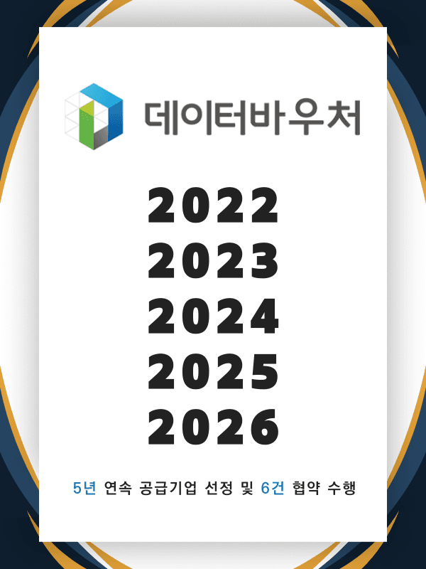 과학기술정보통신부와 한국데이터산업진흥원이 주관하는 2026년 데이터바우처 지원사업은 중소/소상공인을 대상으로 전산업에 걸친 데이터 활용을 지원하여 AI선도를 촉진하고, 누구나 데이터를 이용할 수 있는 공개 활용 기반을 조성하는 사업입니다. 뉴런아키텍쳐는 2022, 2023, 2024, 2025, 2026 5년 연속 공급기업으로 선정되어 다수의 수요기업와 함께 성공적인 데이터 수집, 가공, 활용 사례를 구축했습니다.